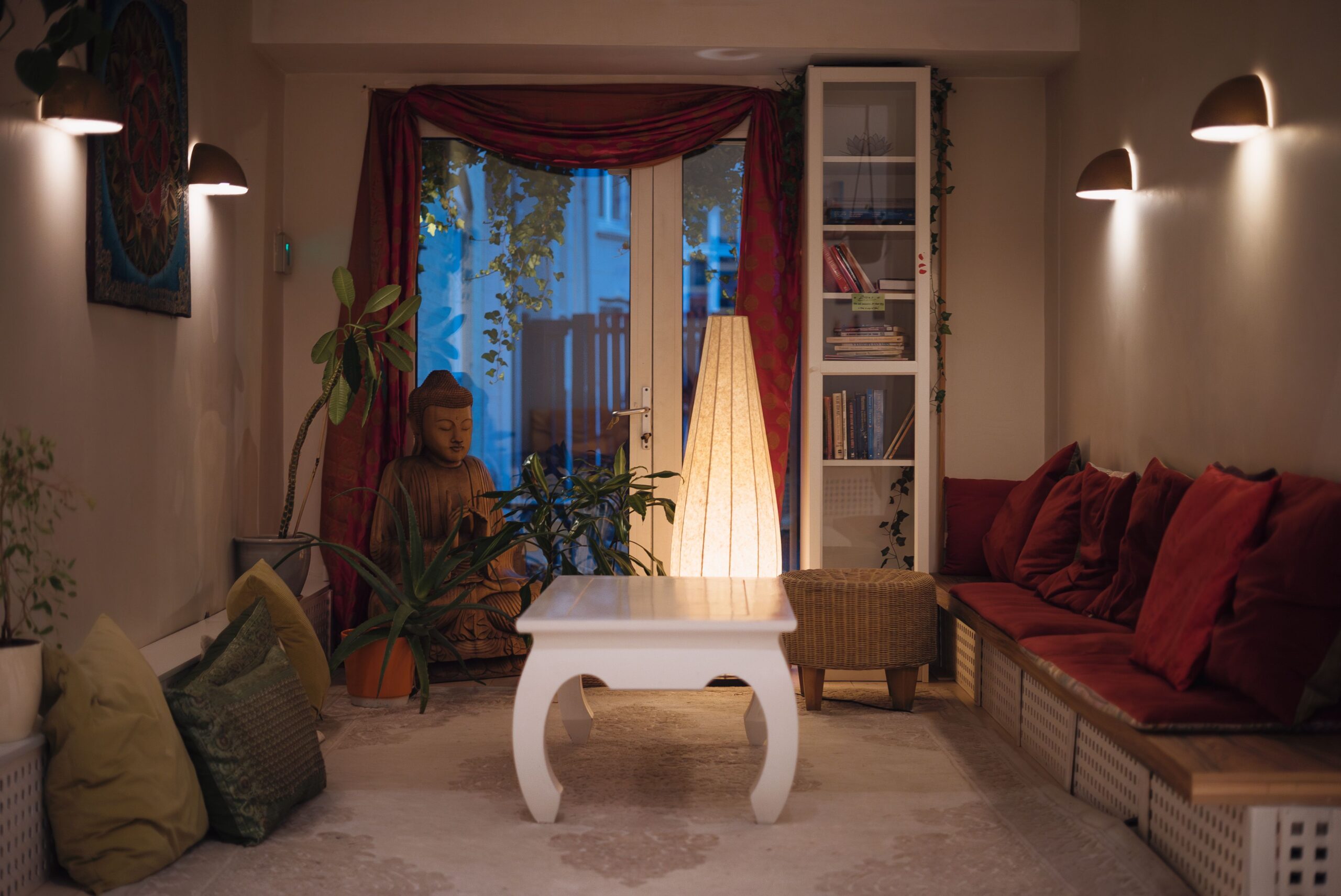 We offer an elevated and pure space, free of meat, coffee, alcohol, smoking or drugs.