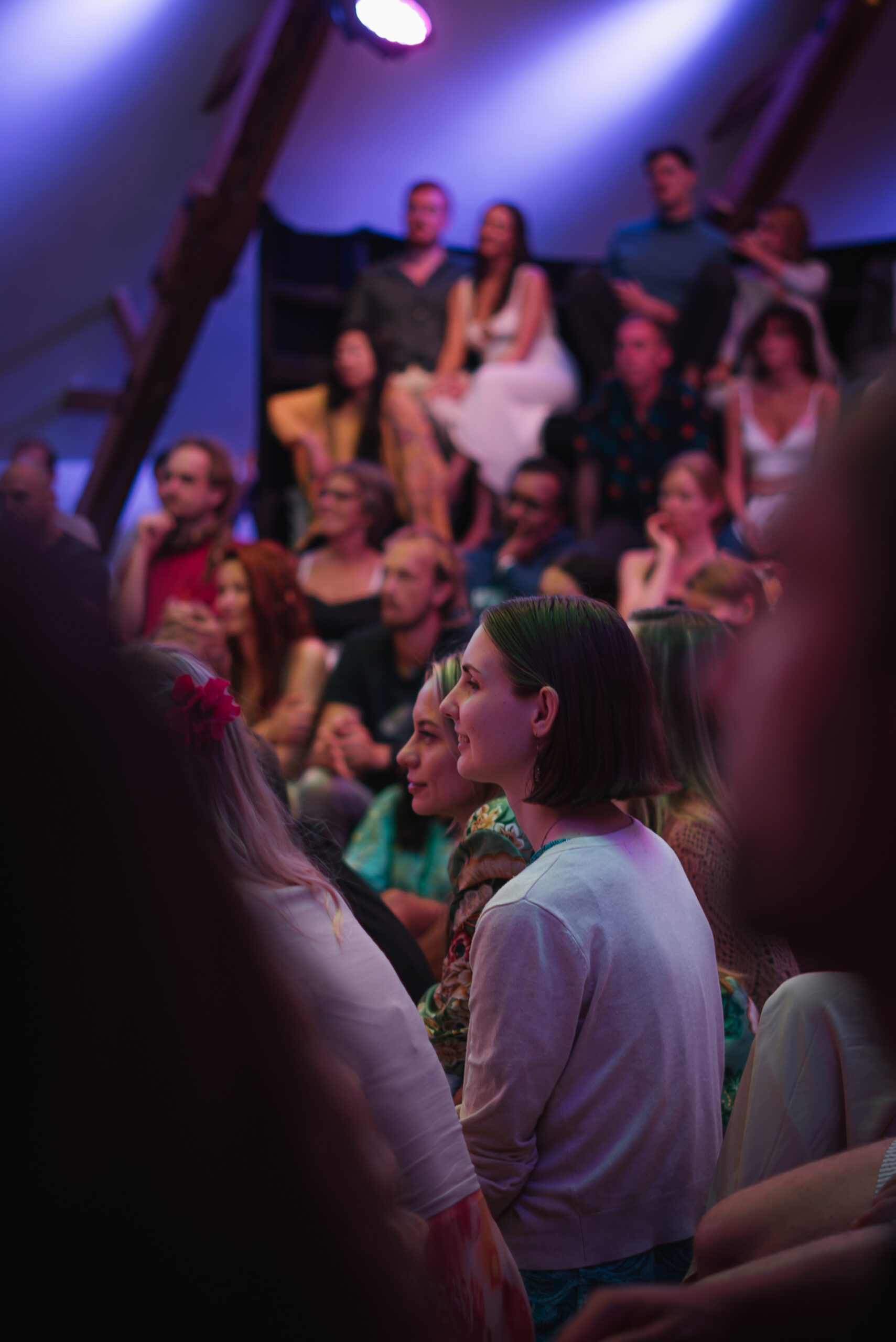 A playful and visionary soul, she is the creator and director of iconic archetypal initiatic stage performances.